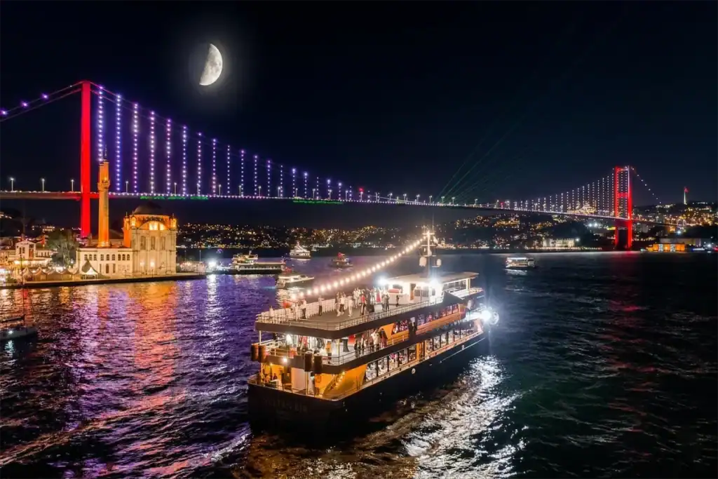- Illuminated Bosphorus Sailing — Cruise between Europe and Asia as Istanbul’s most iconic landmarks glow against the night sky, including Ottoman palaces, waterside yalıs, and the majestic suspension bridges.